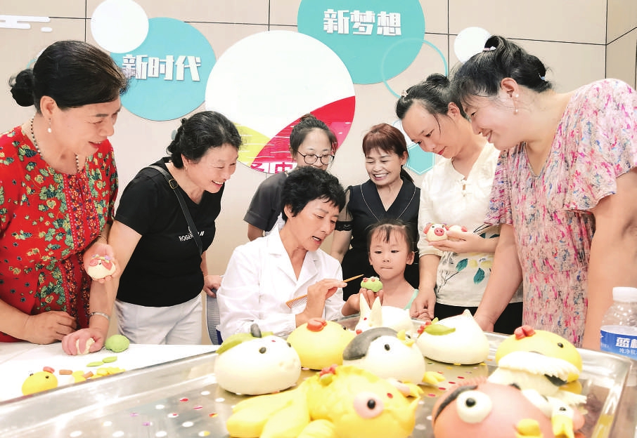 近日,记者在山东省威海市一家创业中心采访时看到,威海区域品牌“花饽饽”非遗传承人于日芬正在向居民讲授“花饽饽”的制作技艺。据介绍,作为融合传统、时尚、营养等元素的面食蛋糕,“花饽饽”深受消费者喜爱,如今已遍布山东、河北、河南、江苏、北京、天津等全国十几个省市,年销售额达千万元以上。