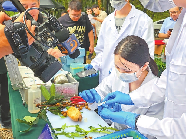 本报南宁讯(记者顾艳伟)“农药残留原来是这样检测的啊!”8月25日,广西壮族自治区博白县三滩镇守育村村民看到食品检测人员的操作后这样感叹。当天,由广西市场监管局组织的食品安全“你点我检·桂在行动”服务走进博白县专项活动,在守育村的“桂圆之乡田园综合体”举办,现场开展食品快检、食品科普宣讲,得到村民和食品从业者的积极响应。