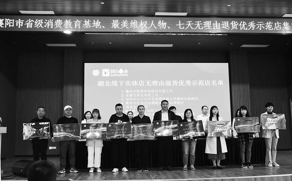 图一:今年4月15日,襄阳市消委会向线下实体店无理由退货优秀示范店授牌。