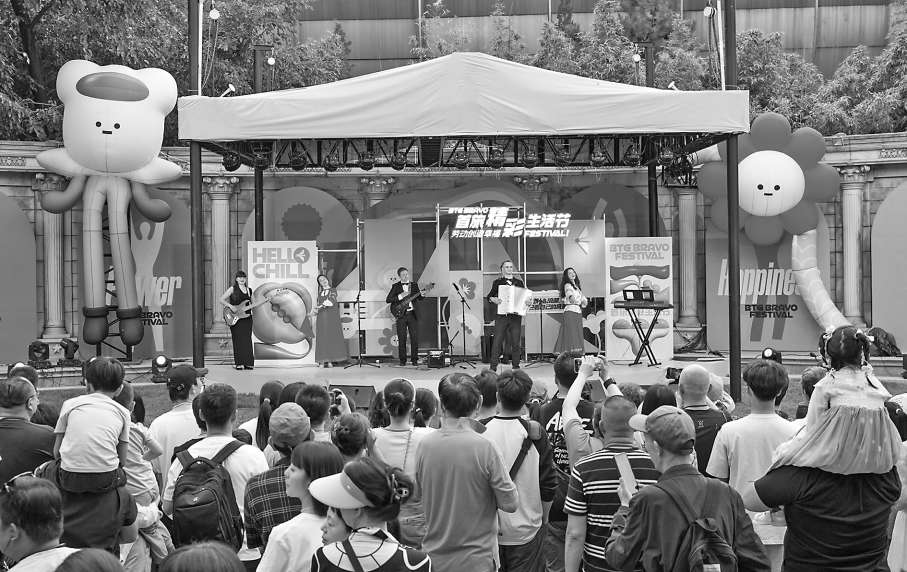 图一:音乐表演吸引观众驻足观看。