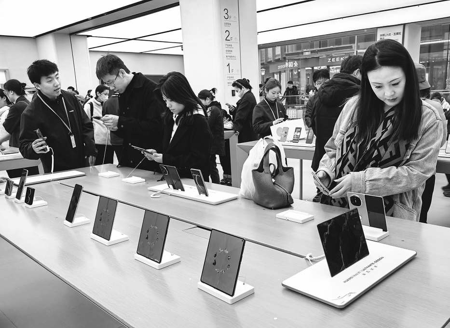 近日,国家统计局发布数据,今年1—2月份,全国社会消费品零售总额83731亿元,同比增长4%。其中除汽车以外的消费品零售额76838亿元,同比增长4.8%。图为消费者选购电子产品。 本报记者董芳忠摄影报道