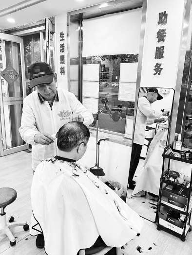 4月24日,在北京增光社区养老服务驿站,记者看到,服务人员正在给张大爷理发。张大爷告诉记者:“每次10块钱,又方便又迅速,周围居民来理发的非常多。”