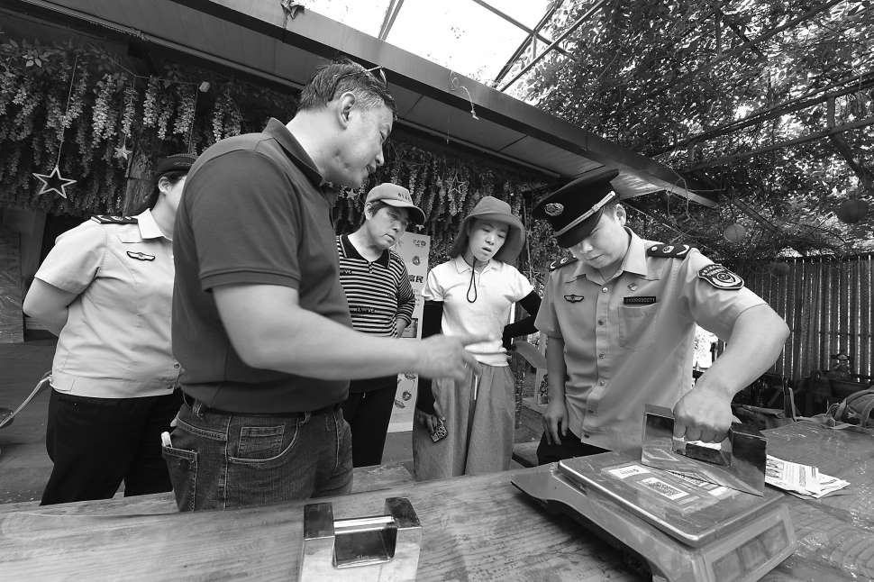 近日,北京市通州区市场监管局和通州区计量检测所的工作人员深入樱桃种植户,为种植户提供电子秤集中上门检定服务,以精准计量守护消费者合法权益,护航特色农业高质量发展。