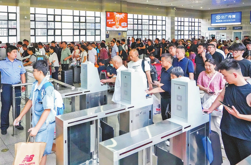 记者近日从中国国家铁路集团有限公司获悉,今年暑运自7月1日启动至8月31日结束,全国铁路累计发送旅客9.53亿人次,日均1537万人次,同比增长5.8%;铁路部门通过增开临时旅客列车、推行计次票和动车组折扣票价等措施提升运力,暑运首日同步实行新列车运行图,日均开行旅客列车超1.15万列。图为北京西站进站乘车的旅客。
