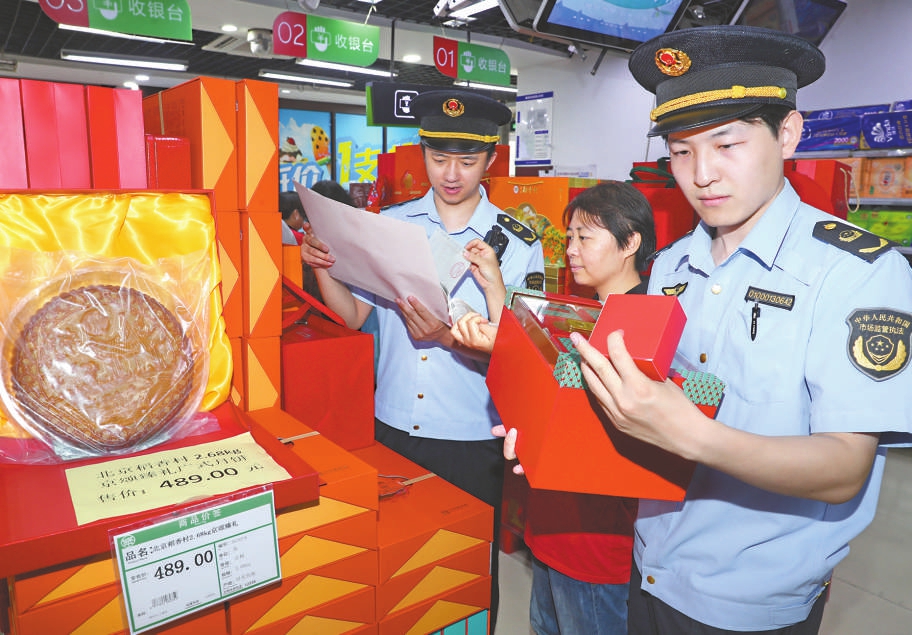 中秋节将至。近日,北京市东城区市场监管局组织开展月饼过度包装专项治理行动,重点对商超、糕点店、专卖店等月饼销售场所正在销售的月饼进行检查。本报记者董芳忠摄影报道