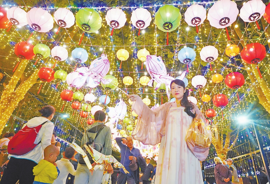 国庆、中秋假期,第21届北京市朝阳区安贞灯会开启,受到市民、游客的欢迎。公园入口处,灯带与景观灯交织成一条星光熠熠的通道:长达22米的艺术天幕如银河垂落,400余盏手工花灯错落有致,每一盏都闪耀着不同的光彩。据了解,这些造型灵动的灯饰源自变废为宝的环保巧思,均为居民和社会单位成员利用废旧材料精心制作而成。