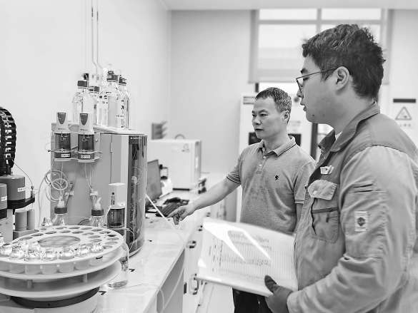 图:质检员对化肥样品进行抽查检验。 吴采平/摄