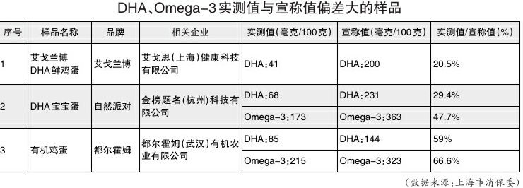 近年来,市场上出现了无菌蛋、可生食蛋、富硒蛋、DHA蛋、Omega-3蛋等多种类型的鸡蛋,这些鸡蛋值得花更高的价钱购买吗?近日,上海市消费者权益保护委员会公布的30款鸡蛋样品比较试验结果显示,所有样品的食品安全指标均符合标准要求;不同样品在基础营养指标方面未见明显差异;在强化营养指标方面,不同样品的硒、DHA及Omega-3(DHA和Omega-3均为不饱和脂肪酸)含量差异明显,其中艾戈兰博、自然派对、都尔霍姆等3款样品的不饱和脂肪酸实测值与宣称值偏差大。