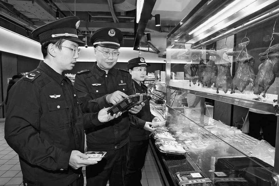 近日,北京市西城区市场监管局开展熟食制品安全专项检查,全面排查食品安全风险。执法人员重点检查熟肉制品销售环节,严格规范包装贮存管理、进货台账记录,并同步实施食品快速检测,强化风险防控。本报记者董芳忠摄影报道