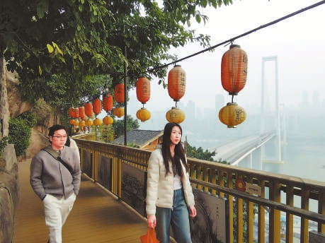 “走在悬空栈桥上,既可俯瞰嘉陵江美景,又可远眺李子坝‘单轨穿楼’的独特景观,真是太美了,只有山城重庆才有这样的游览体验。”1月15日,来自四川宜宾的游客马先生站在重庆半山崖线步道——鹅岭栈桥上,不时发出赞叹。