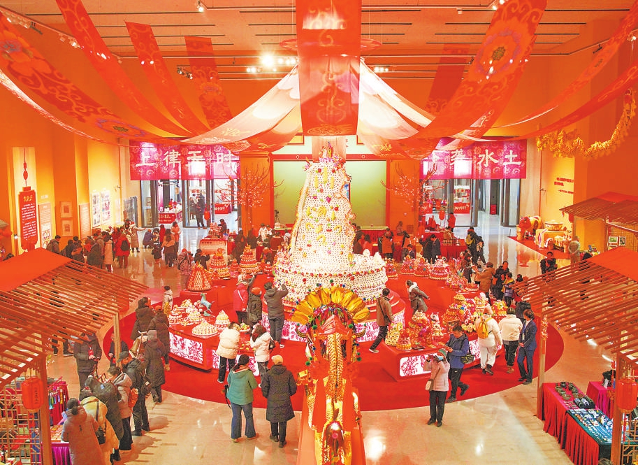 丙午春节主题展于1月20日在中国非物质文化遗产馆开展。此次春节主题展分为4个展区:展示传统历法常识与岁首习俗演变;通过涉马非遗项目领略马的“神姿”与美好寓意;从种植、存储等维度呈现非遗保护、春节习俗与粮食安全的关联;以精美灯彩展现万家欢乐的节日氛围。展厅内还设置了“非遗年礼”市集。据悉,此次展览将持续至3月20日。