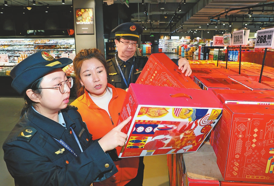 近日,北京市石景山区市场监管局聚焦礼盒、茶叶、保健食品、化妆品等重点品类,开展过度包装规范整治行动。本次行动以大型商超等为重点场所,现场核查商品包装是否符合国家标准,严厉查处包装层数超标、空隙率过高、包装成本与销售价格比例失衡等违法行为。 本报记者董芳忠摄影报道