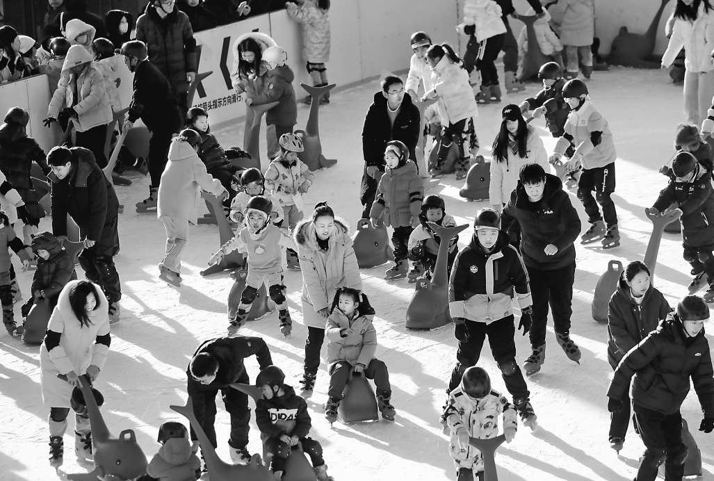 寒假伊始,不少中小学生走进冰场畅享冰雪乐趣,开启欢乐的寒假生活。近日,记者在北京五棵松华熙广场的滑冰场看到,冰场人头攒动,冰面上少年身影穿梭往来,有的身姿优雅、自在滑行,有的相互搀扶、稳步前行,在一次次滑倒与起身中不断突破自我。本报记者董芳忠摄影报道