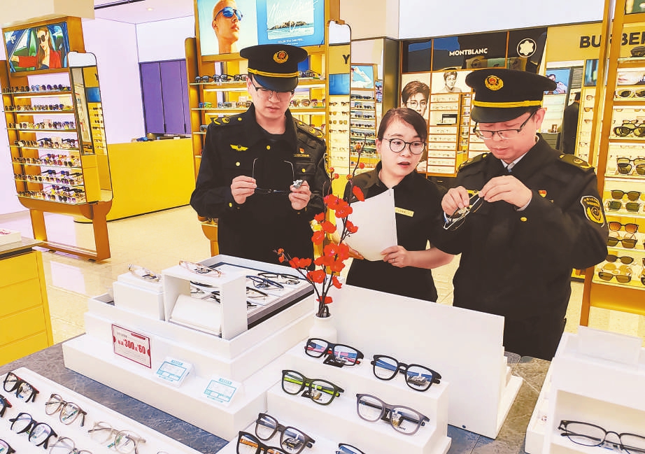 近日,北京市顺义区市场监管局开展眼镜产品专项检查,执法人员走进眼镜销售门店仔细查验隐形眼镜进货渠道是否正规、产品资质是否齐全,框架眼镜的材质、做工等是否达标,同时对验光设备的精准度进行校准检查。 本报记者董芳忠摄影报道