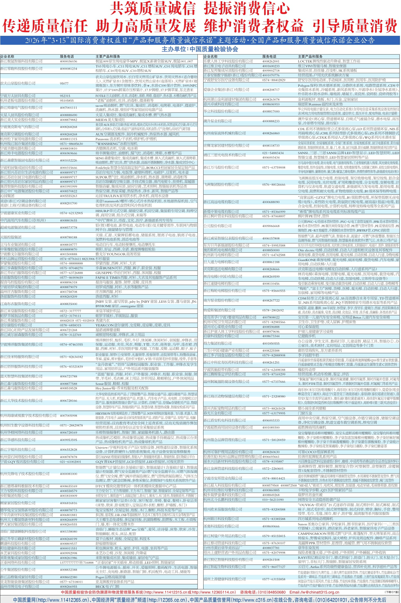 2026年“3·15”国际消费者权益日“产品和服务质量诚信承诺”主题活动·全国产品和服务质量诚信承诺企业公告