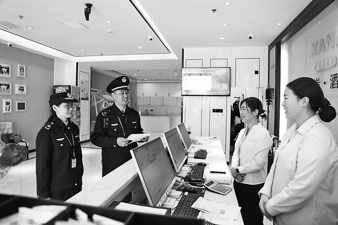 图二:执法人员检查酒店。