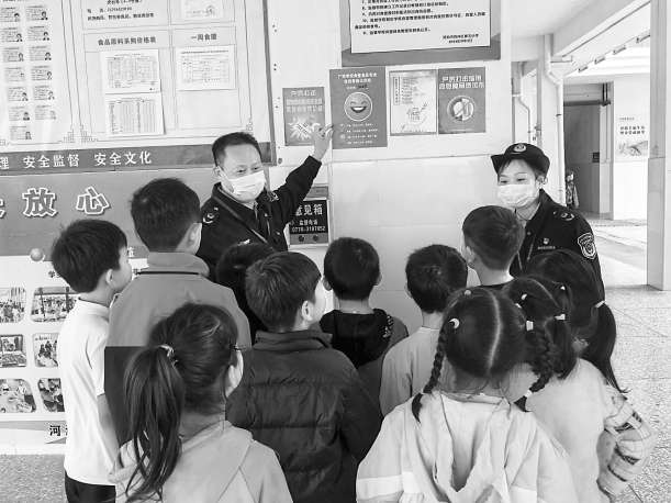 图:执法人员在学校开展食品安全宣讲。 河池市市场监管局供图