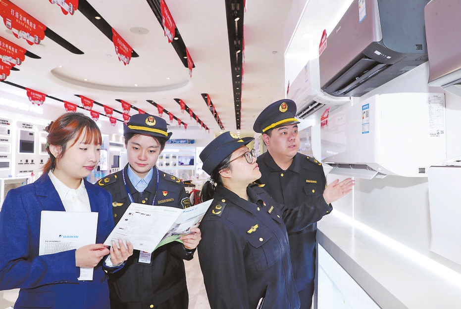 近日,北京市东城区市场监管局开展家电市场绿色消费专项检查。执法人员重点检查家电经营企业节能标示张贴是否到位、宣传手册是否有虚假节能广告信息等。 本报记者董芳忠摄影报道