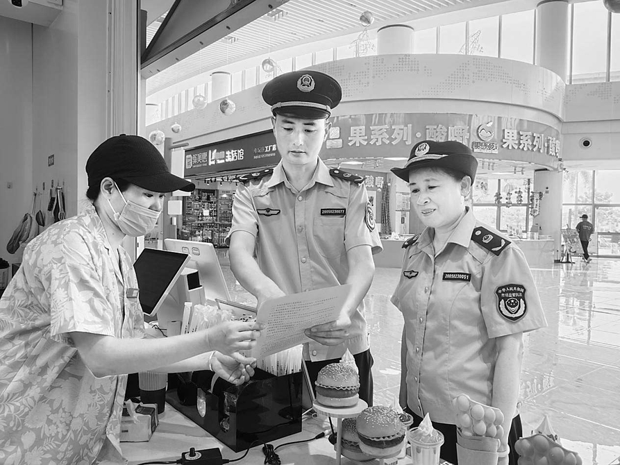 近日,广西壮族自治区北海市银海区市场监管局深入商场、超市,向餐饮、零售商户发放知识产权宣传手册,向经营主体普及商标维权途径,强化经营者知识产权保护意识。 蔡家伟 本报记者顾艳伟摄影报道